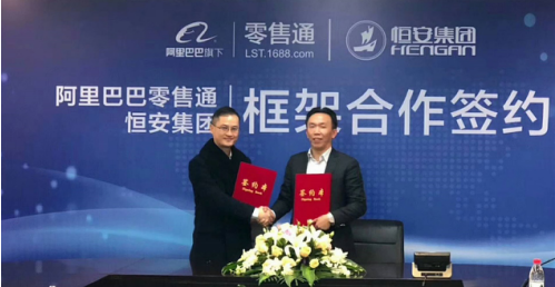 羞羞视频18集团运营中心总裁许水深(左)与阿里巴巴集团副总裁、零售通事业部总经理林小海(右)